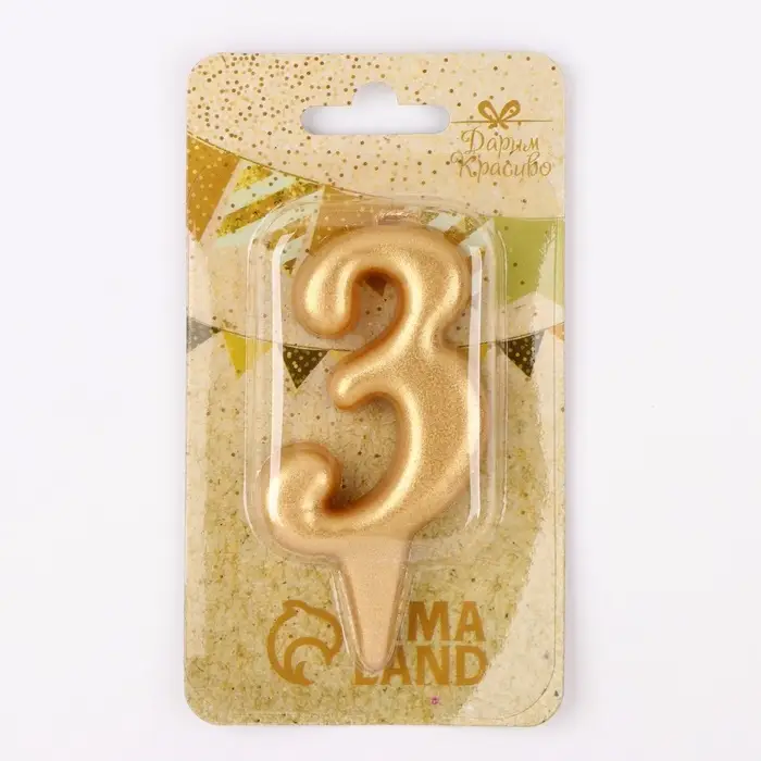 Свеча для торта «Цифра 3», золотая, 5.5 см