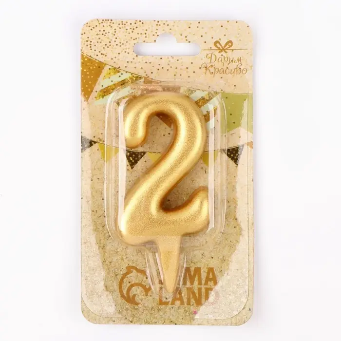 Свеча для торта «Цифра 2», золотая, 5.5 см