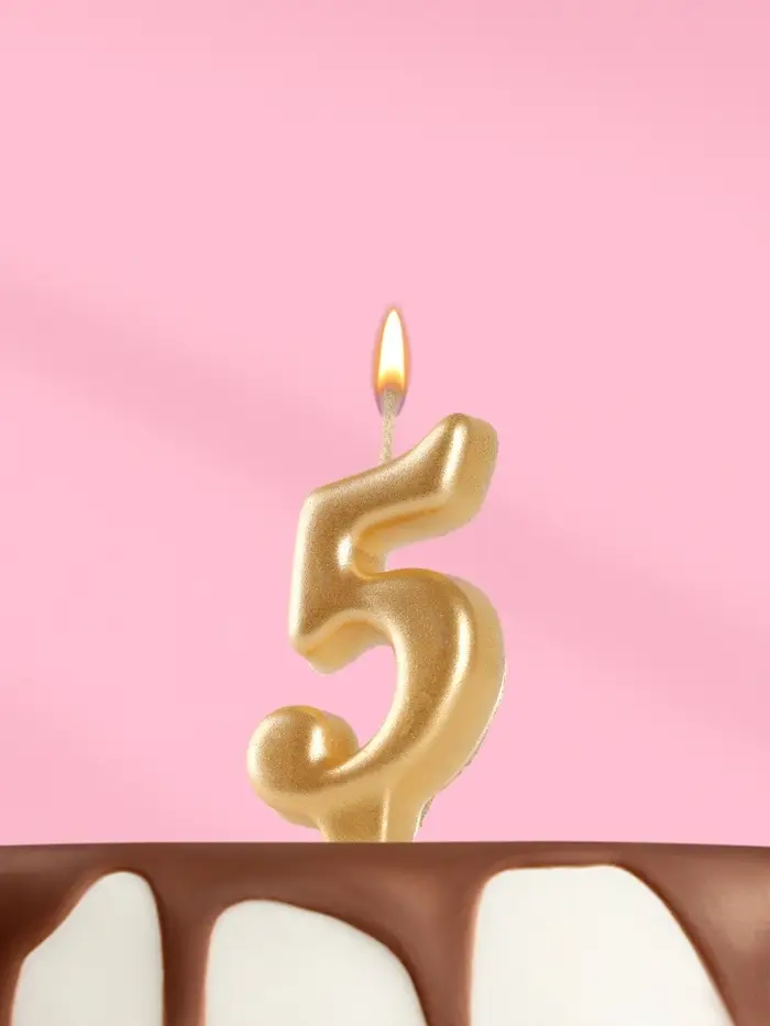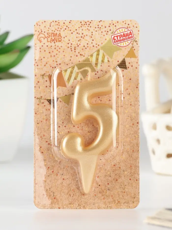 Свеча для торта «Цифра 5», золотая, 5.5 см
