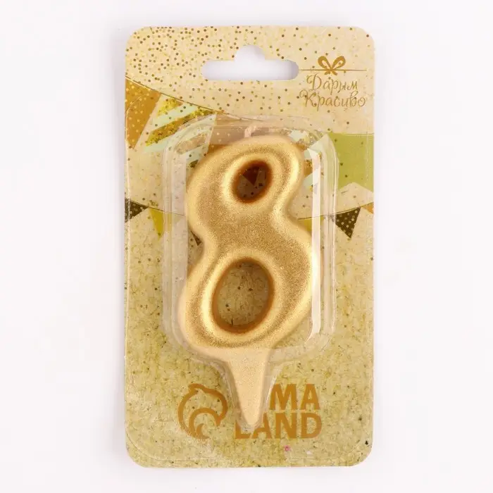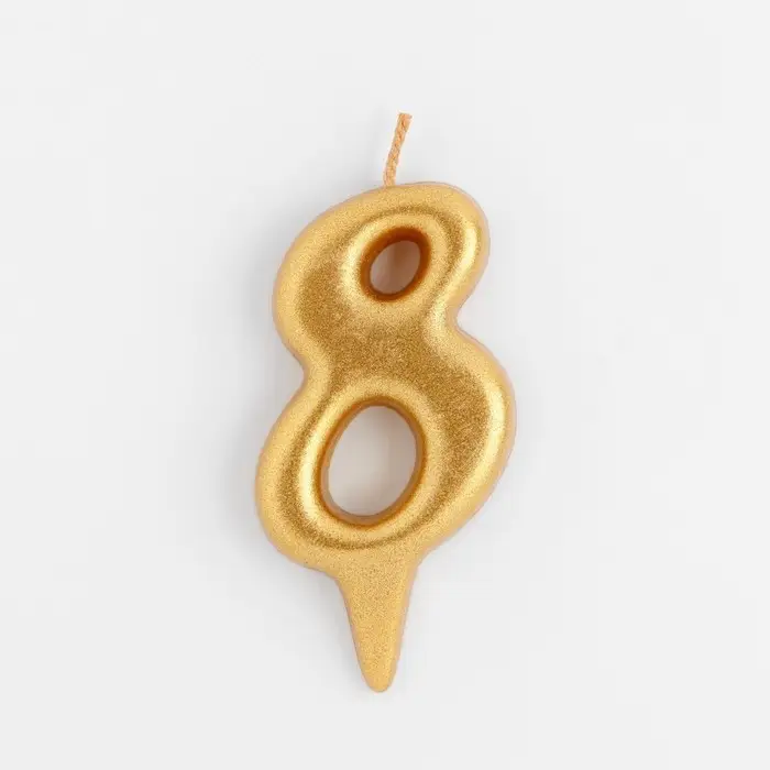 Свеча для торта цифра «Овал» золотая 8, большая, 5.5 см