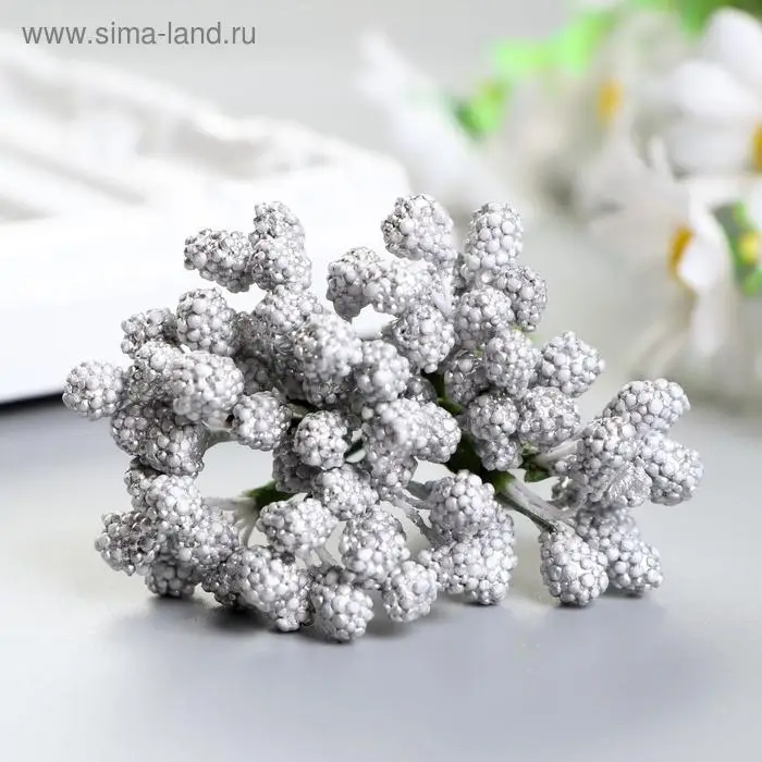 Декор веточка " Шишечки золото/серебро" (набор-букет 12 веточек) 9 см