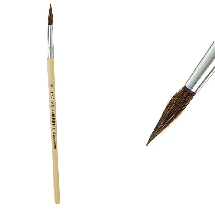 Кисть белка круглая № 6, ручка дерево