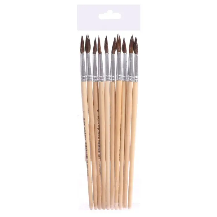 Набор кистей белка круглые 5 штук (№1,2,3,4,5) с деревянными ручками на блистере