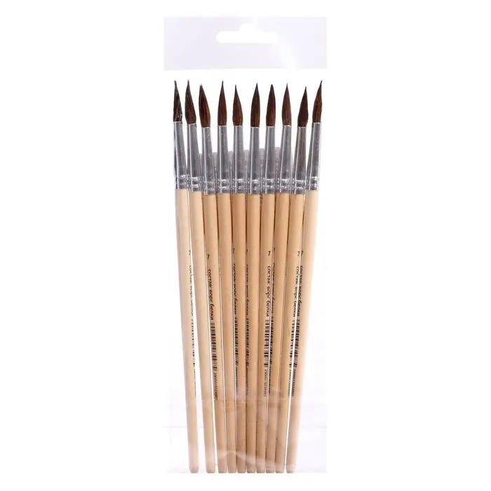 Набор кистей белка круглые 5 штук (№1,2,3,4,5) с деревянными ручками на блистере
