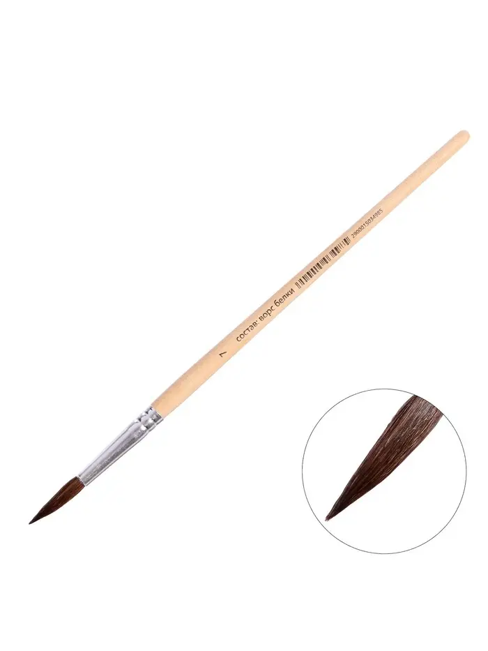 Кисть подходит для работы с акварелью, гуашью, тушью, а также для прорисовывания различных деталей рисунка.