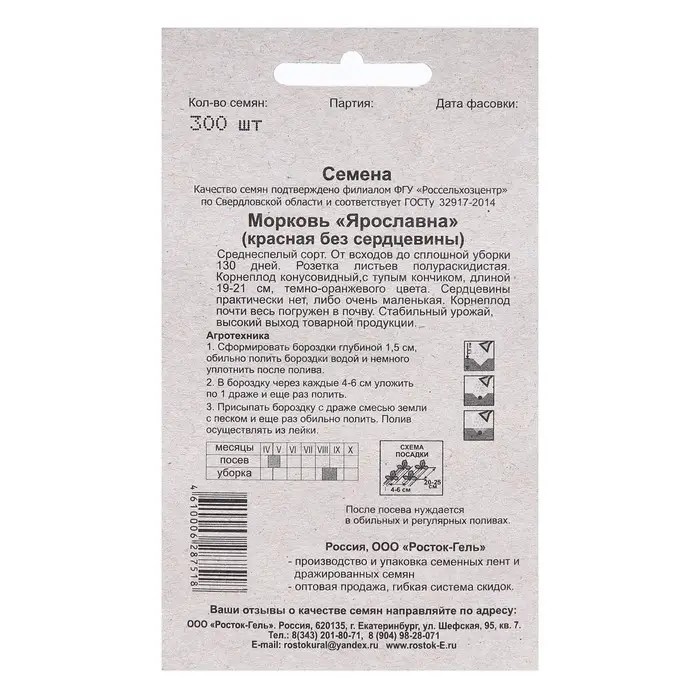 Семена Морковь КРАСНАЯ БЕЗ СЕРДЦЕВИНЫ "ЯРОСЛАВНА" гелевое драже, 300 шт