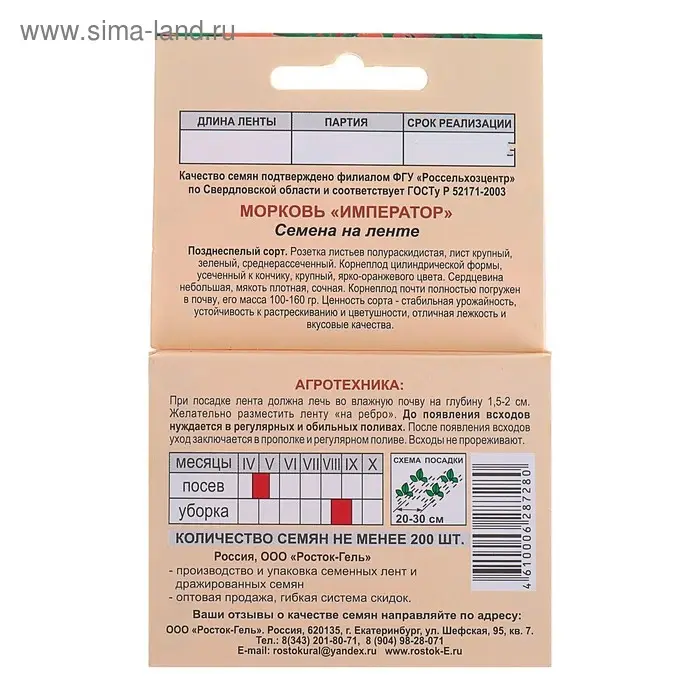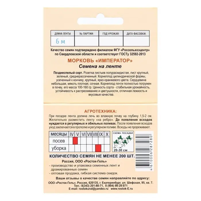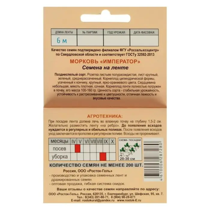 Семена Морковь "ИМПЕРАТОР" Семена на ленте, 6 М