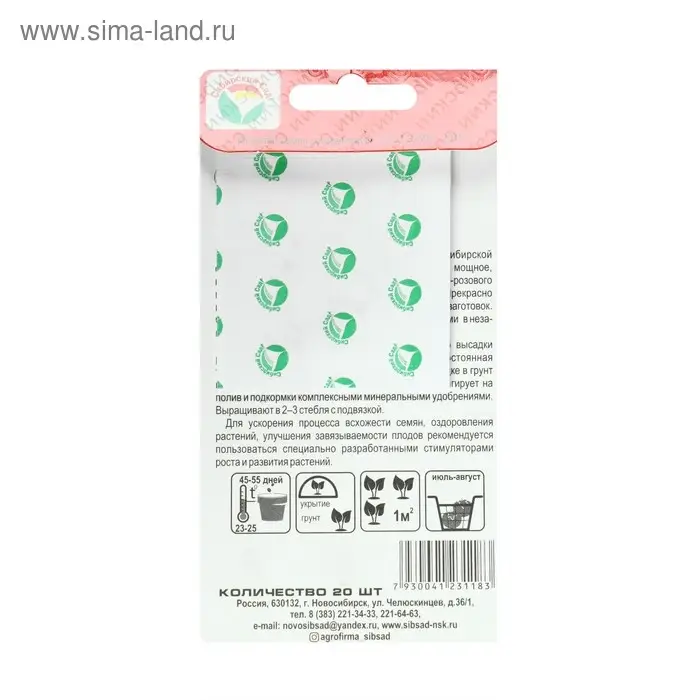 Среднеспелый сорт, выведенный в Сибири, отличается особенно крупными плодами, которые могут достигать массы в 1300 г. Детерминантный куст вырастает на 80 см и отдаёт хороший урожай даже в неблагоприятных погодных условиях.