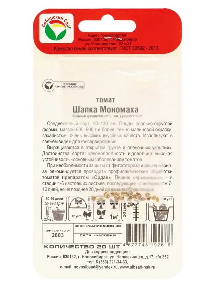 Семена Томат "Шапка Мономаха", среднеспелый, детерминантный,среднерослый, 20 шт