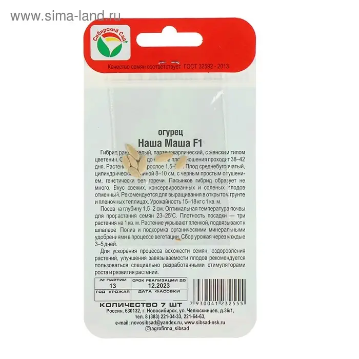 Семена Огурец Наша Маша F1, партенокарпический, 7 шт