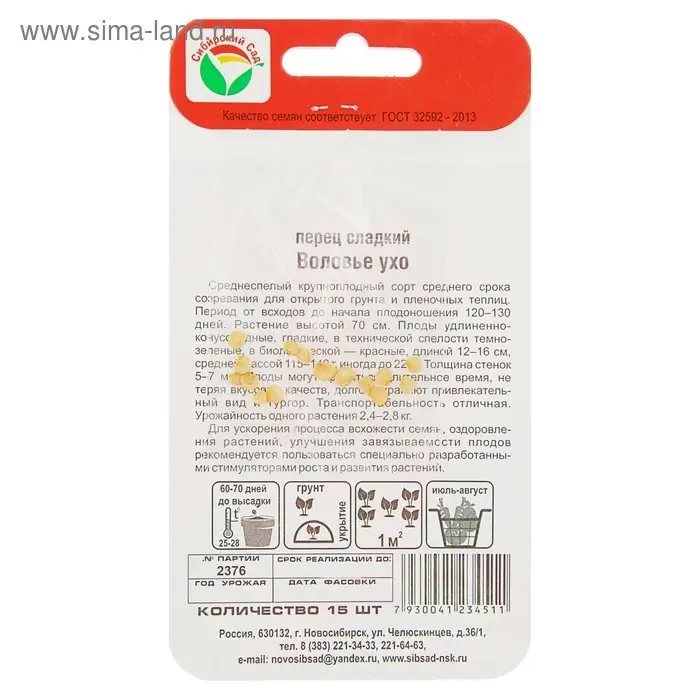 Семена Перец сладкий "Воловье ухо", среднеспелый, крупноплодный, 15 шт