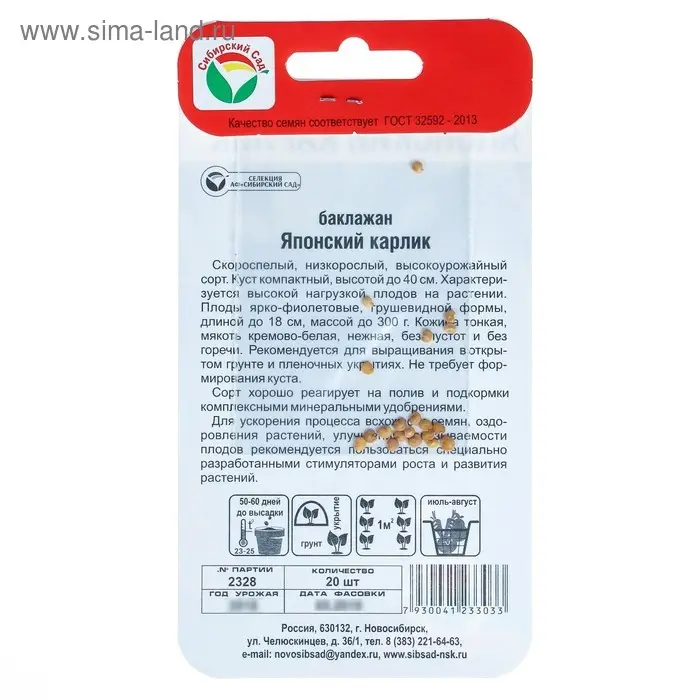 «Японский карлик» представляет собой компактный куст высотой до 40 см, который украшают крупные ярко-фиолетовые плоды длиной 18 см и массой 300 г. Прекрасно подходит для домашней кулинарии и консервирования.