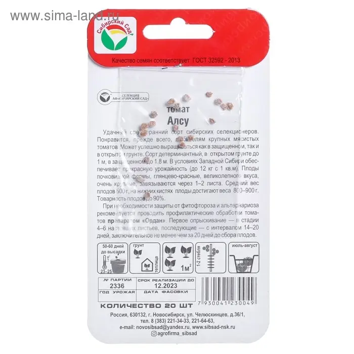 Семена Томат "Алсу", среднеранний,детерминантный,среднерослый, 20 шт