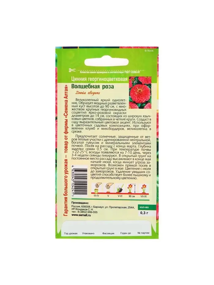 Семена цветов Цинния "Волшебная Роза", ц/п, О, ц/п, 0,3 г.