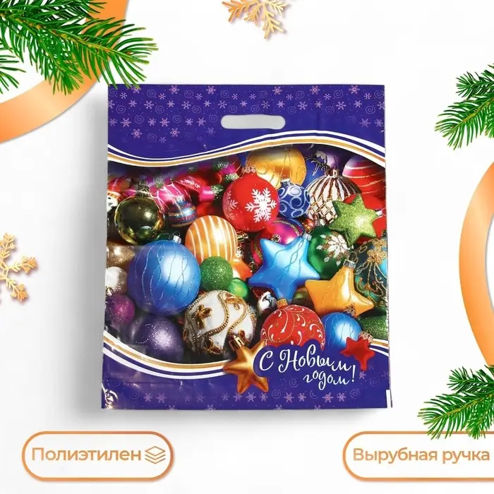 Однако, самое главное в этом пакете – это его уникальный дизайн. Выполненный в традиционных новогодних цветах, он украшен яркими рисунками снежинок, елочных игрушек и других символов Нового года.