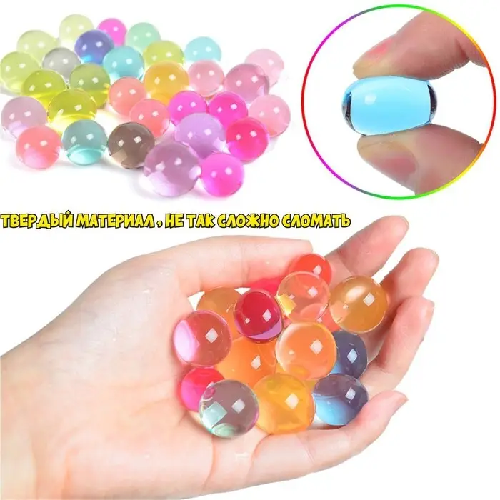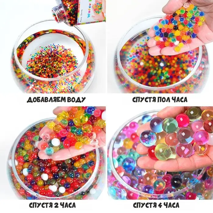 Цветные шарики, которые увеличиваются при погружении в воду, любопытны и забавны. В процессе игры ребёнок в простой и интересной форме узнает о свойствах воды и понаблюдает за ростом фигурок. Просто положите их в прозрачную ёмкость, залейте чистой водой и ждите результат!