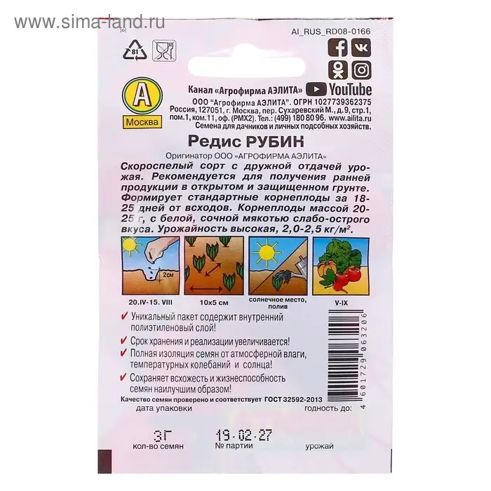 Семена Редис "18 дней", 25 г