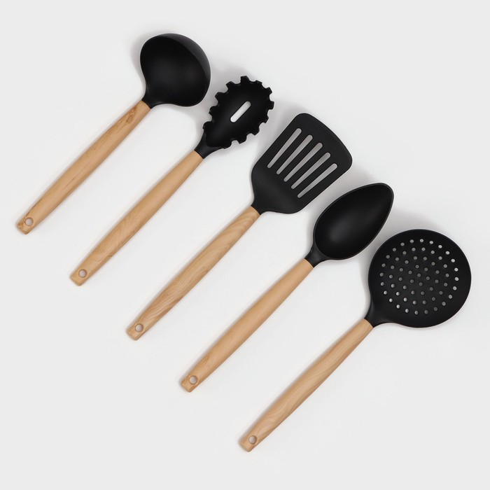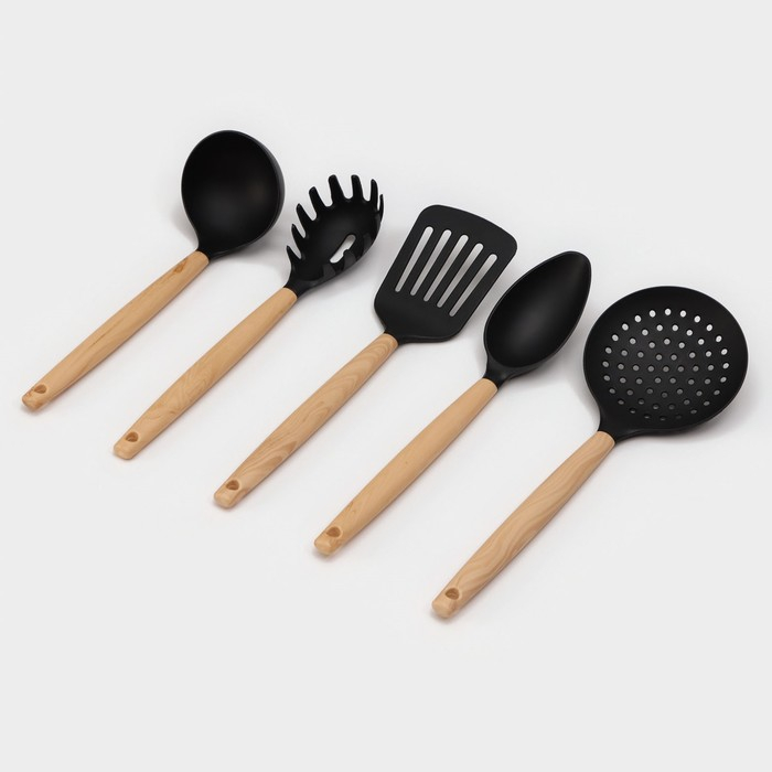 Набор кухонных принадлежностей Доляна «Антрацитовый блеск», 5 предметов, цвет чёрный