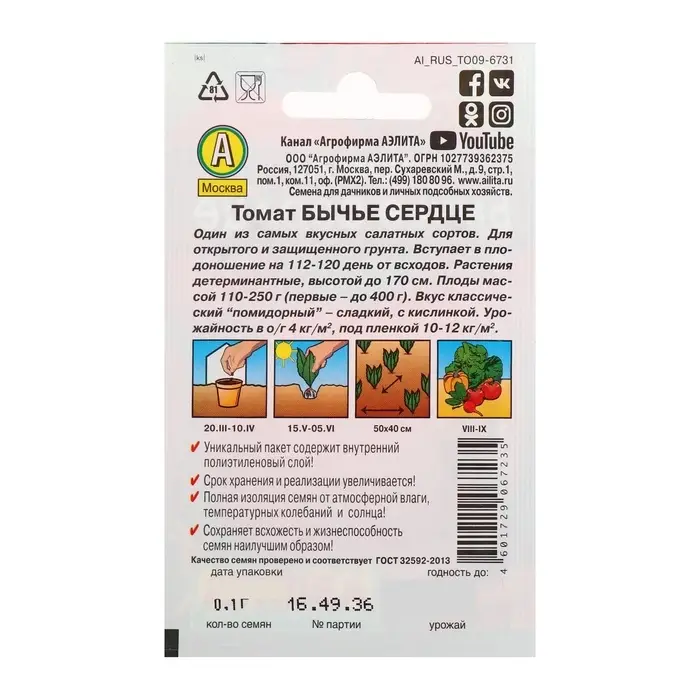 Семена Томат "Бычье сердце", позднеспелый, детерминантный,среднерослый, 20 шт.