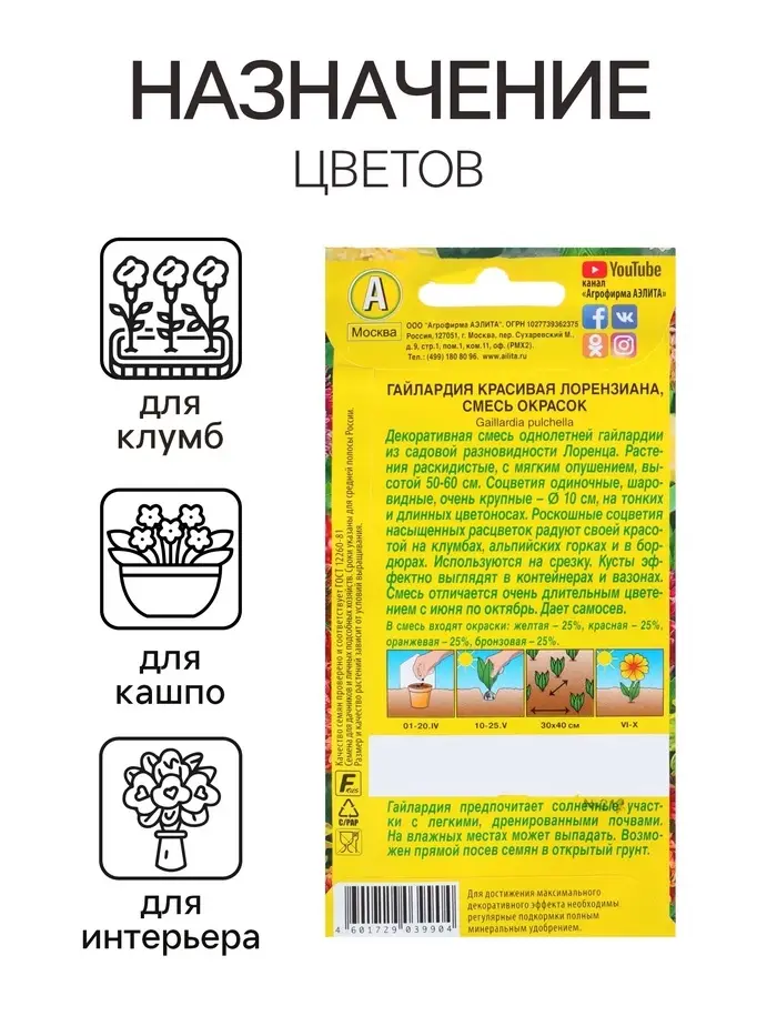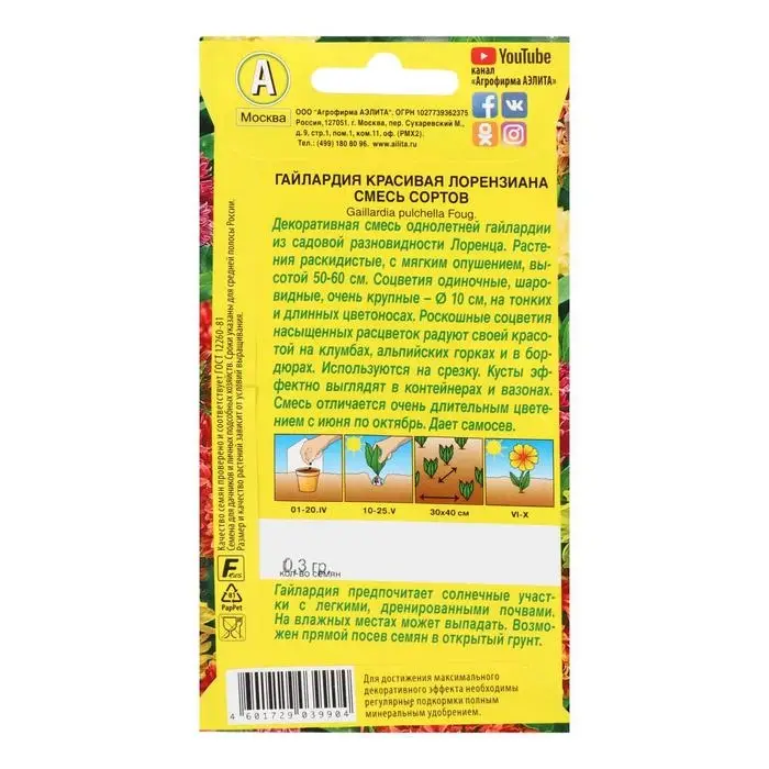 Семена цветов Гайлардия "Лорензиана", смесь окрасок, 0,3 г