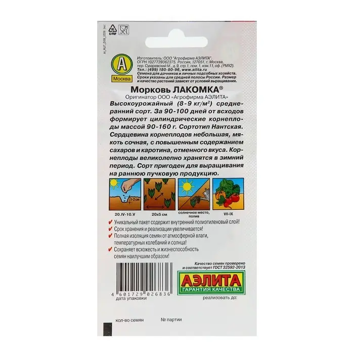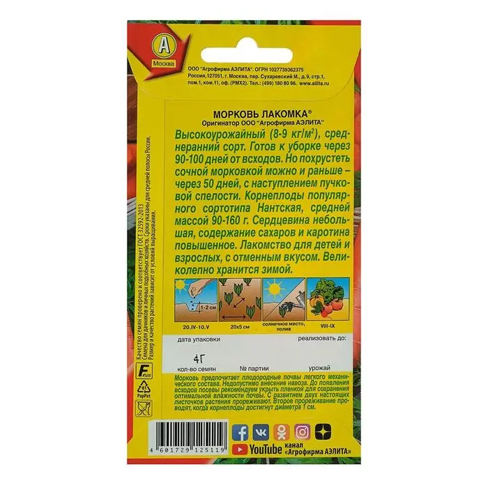 Семена Морковь "Лакомка", 2 г