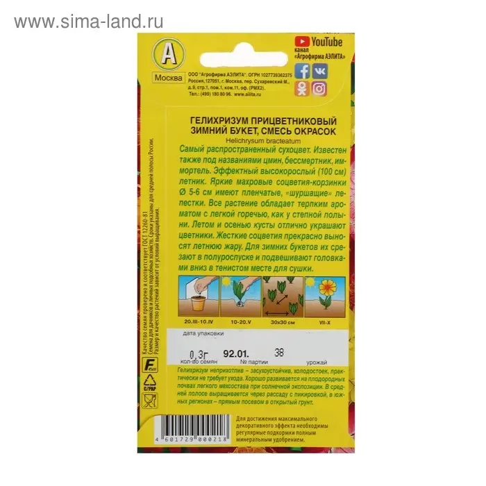 Семена цветов Гелихризум "Русский размер", 0,1 г