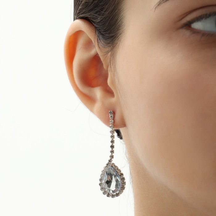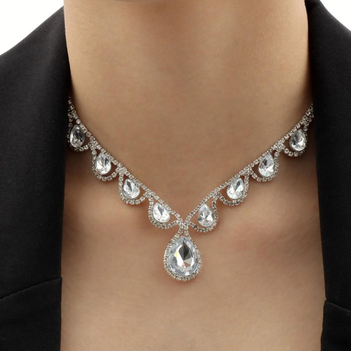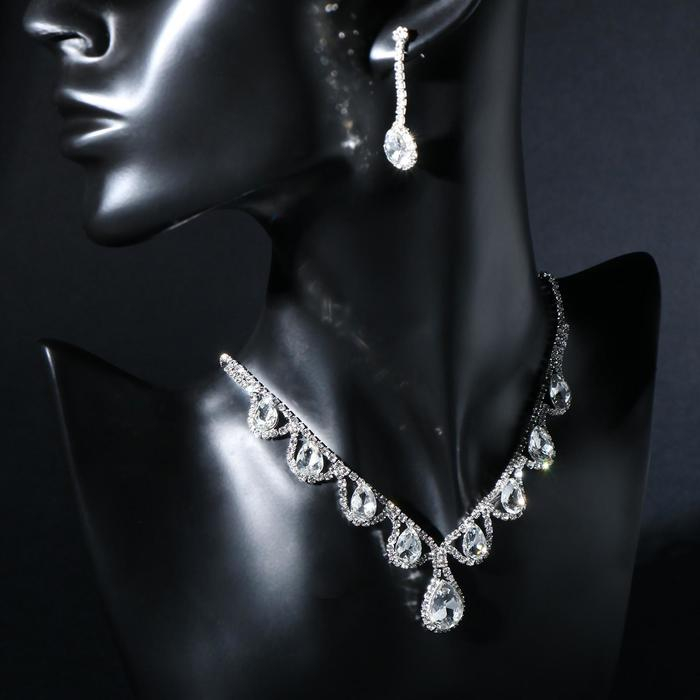 Набор 2 предмета: серьги, колье «Листопад» капли, одна нить, цвет белый в серебре, 35 см