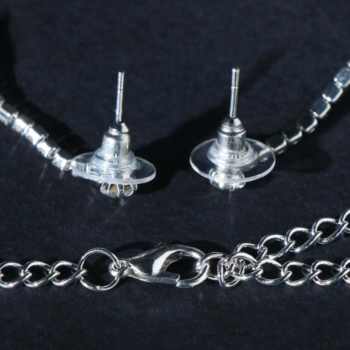 Набор 2 предмета: серьги, чокер «Лёд» три ряда, цвет белый в серебре, 30 см