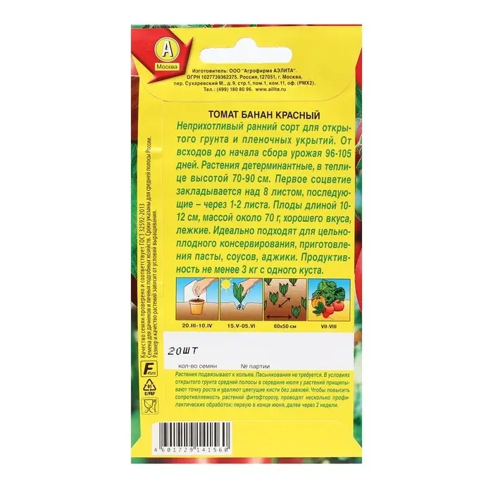Семена Томат "Банан красный", раннеспелый, 20 шт.