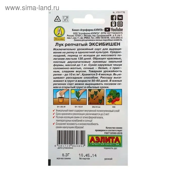 Семена Лук репчатый Эксибишен, 0,5гр