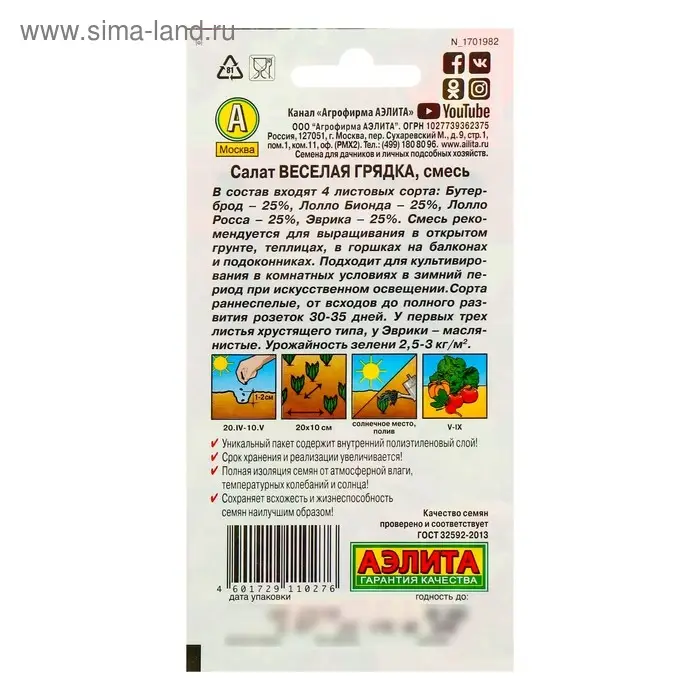 В смесь «Весёлая грядка» входят 4 сорта: «Бутерброд», «Лолло Бионда», «Лолло Росса» и «Эврика». Они подходят для выращивания в открытом грунте, теплицах, в горшках на балконах и подоконниках, а также для культивирования в комнатных условиях в зимний период при искусственном освещении.
