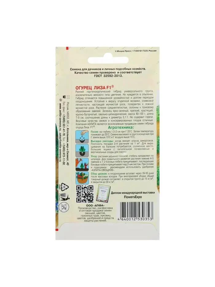 Семена Огурец "Лиза" F1, раннеспелый, партенокарпический, 10 шт