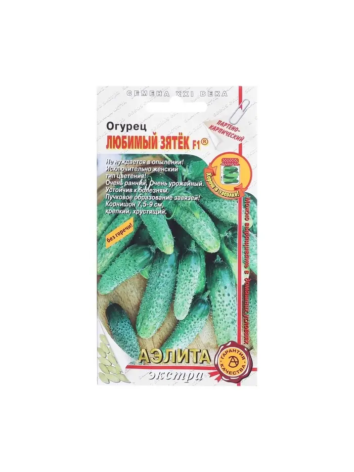 Семена Огурец "Любимый зятек" F1, раннеспелый, партенокарпический, 10 шт