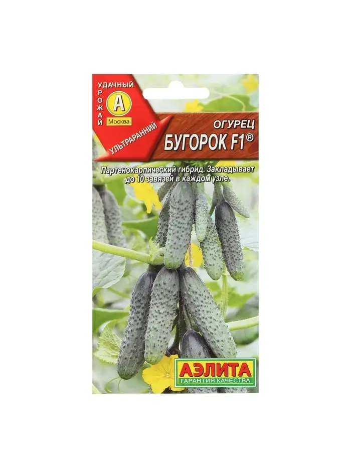 «Бугорок» — короткий цилиндрический бугорчатый гибрид массой 75–80 г. Благодаря отсутствию горчинки и бесподобному вкусу корнишоны используются в свежем, солёном и в консервированном виде. Урожайность — 16–18 кг/м².