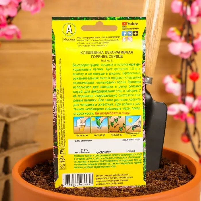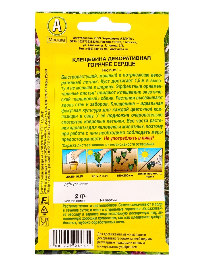 Семена цветов Клещевина "Горячее сердце", О, 2 г