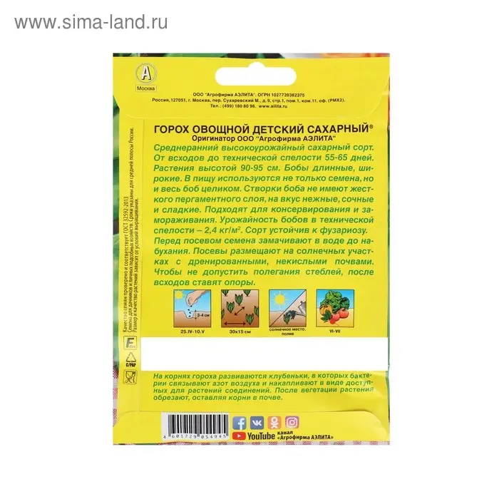 Семена Горох овощной "Оконный малыш", ц/п, 10 шт