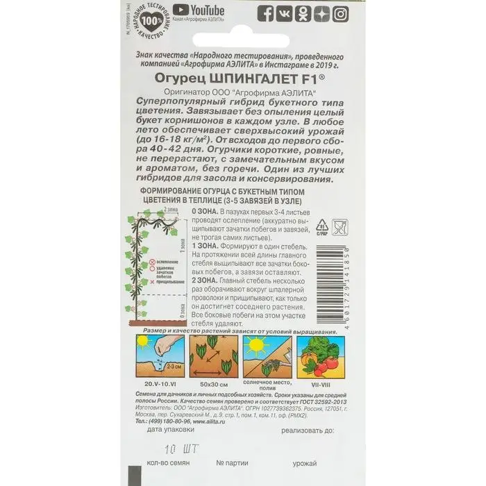 Семена Огурец "Шпингалет" F1, партенокарпический, 10 шт.