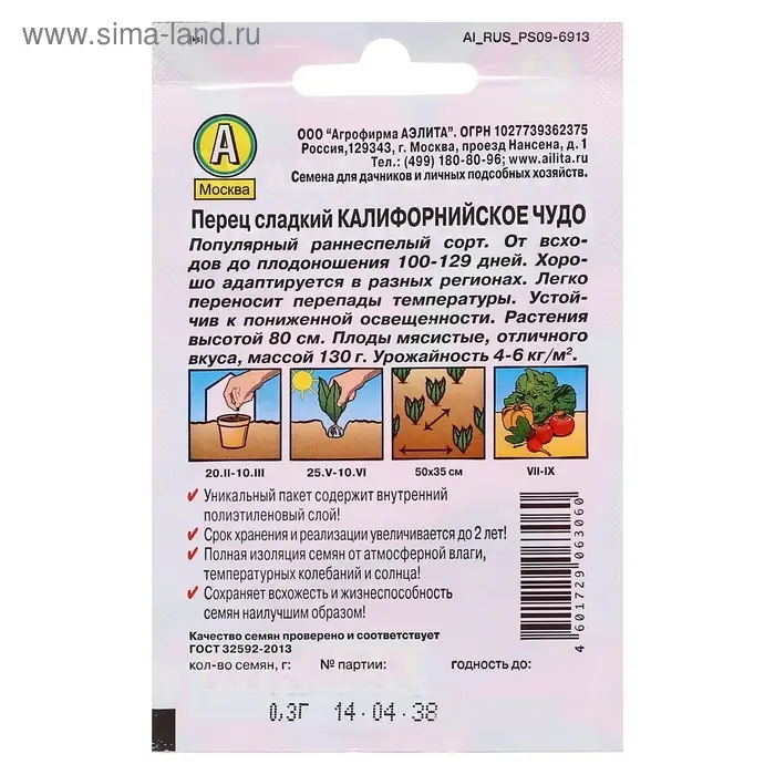 Семена Перец сладкий "Калифорнийское чудо" "Лидер", 0,3 г ,