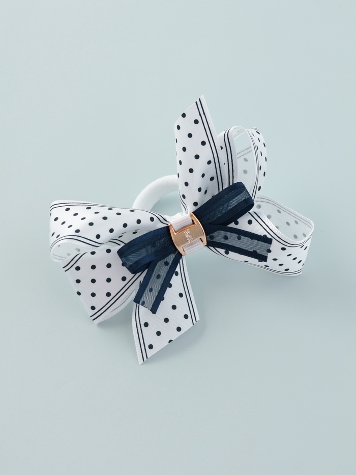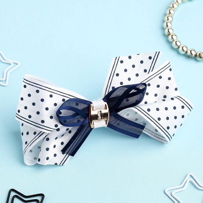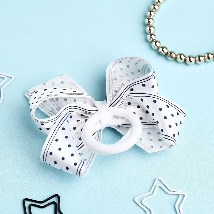 Резинка для волос «Школьница», бант полоски горох, 8 см, бело-синяя