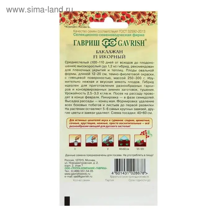 Семена Баклажан "Икорный", ц/п, 0,1 г