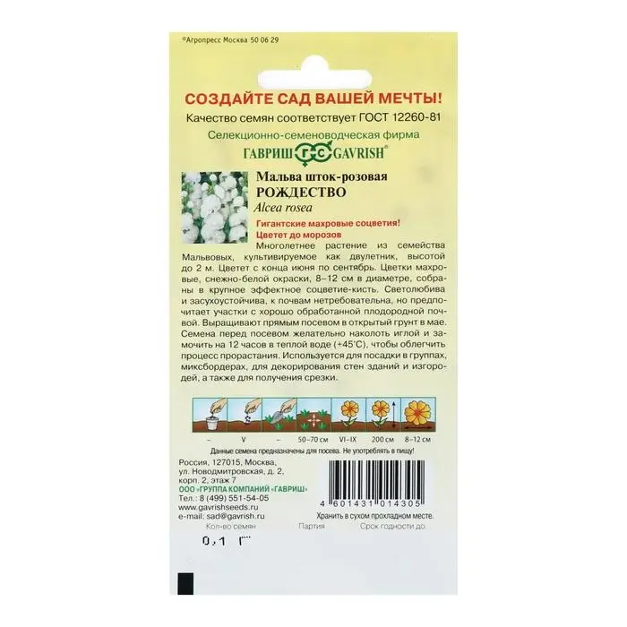 Семена цветов Мальва "Рождество", ц/п, 0,1 г