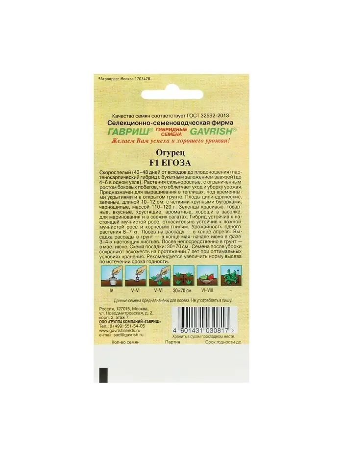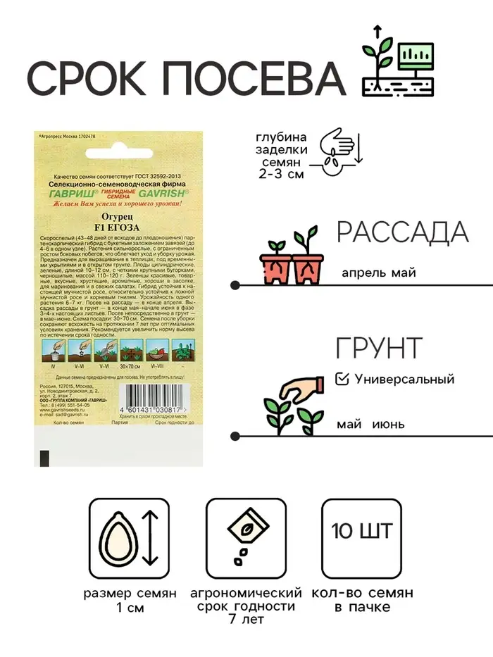 Семена огурца "Егоза", F1, 10 шт.