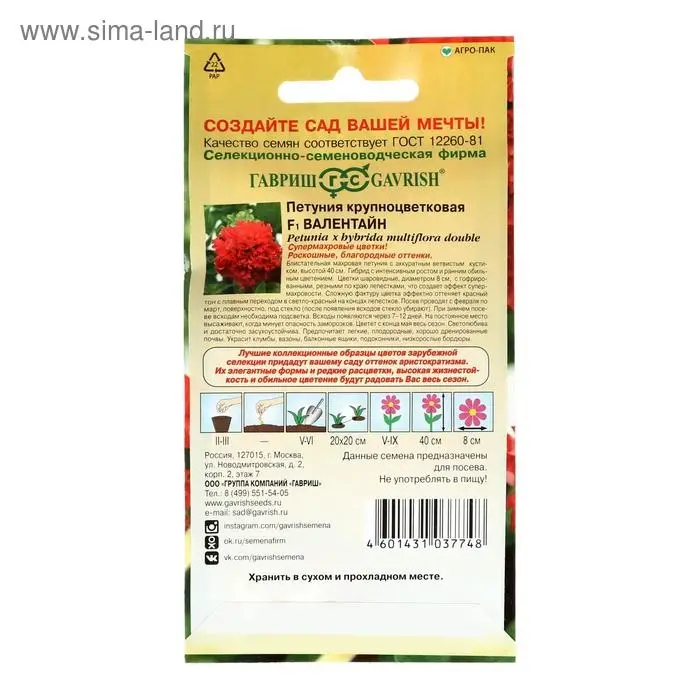 Семена цветов Петуния "Валентайн" F1, махровая, крупноцветковая, О, гранулы