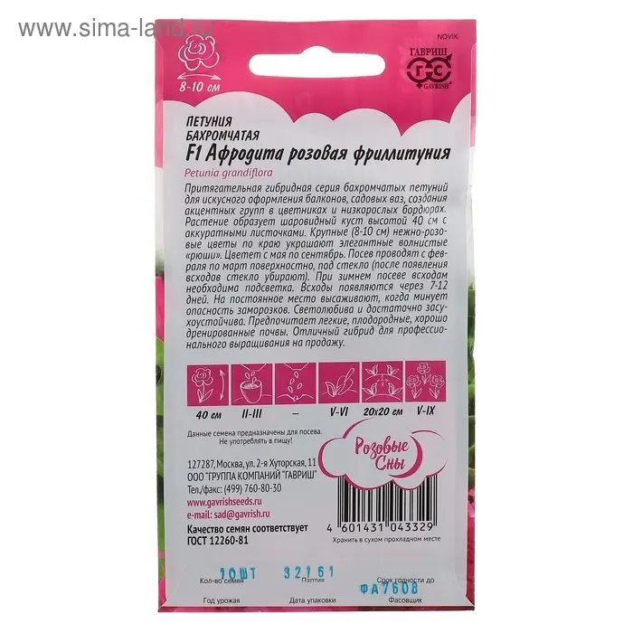 Семена цветов Петуния "Афродита розовая" F1 , О, бахромчатая, пробирка, ц/п, 5 шт.