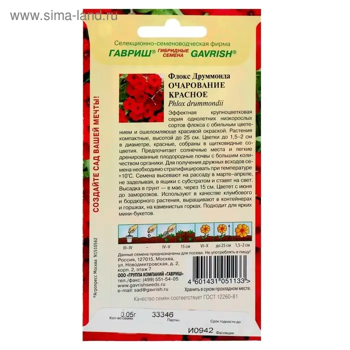 Семена цветов Флокс "Очарование красное", ц/п, друммонда, О, 0,05 г