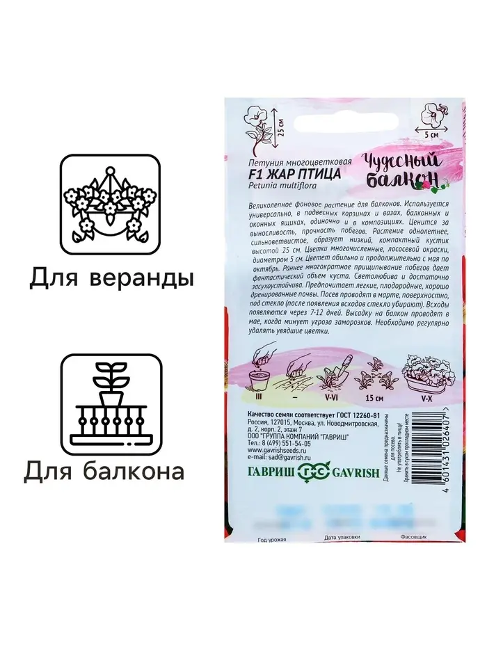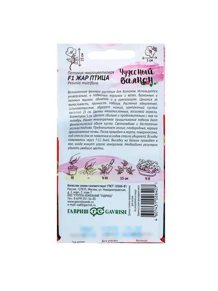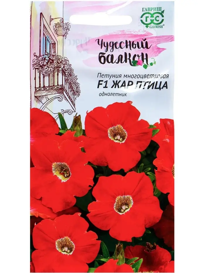 Семена цветов Петуния "Жар птица" F1, О, гранулы, пробирка, ц/п, 7 шт.