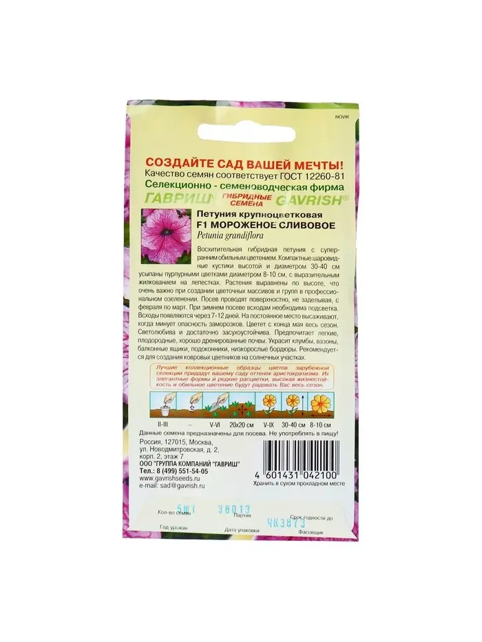 Семена цветов Петуния "Мороженое сливовое" F1 крупноцветковая, О, гранулы, пробирка, ц/п, 5 шт. 1774