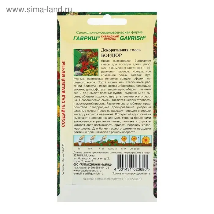Семена цветов Декоративная смесь "Бордюр", ц/п, 0,5