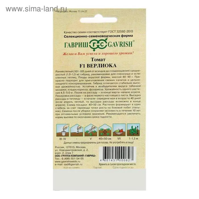 Семена Томат «Верлиока», индетерминатный, высокорослый, 0.05 г