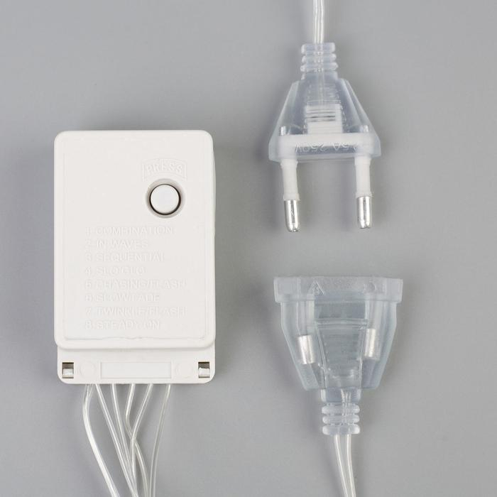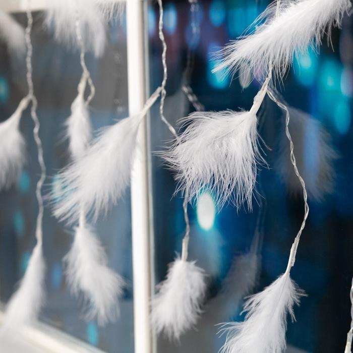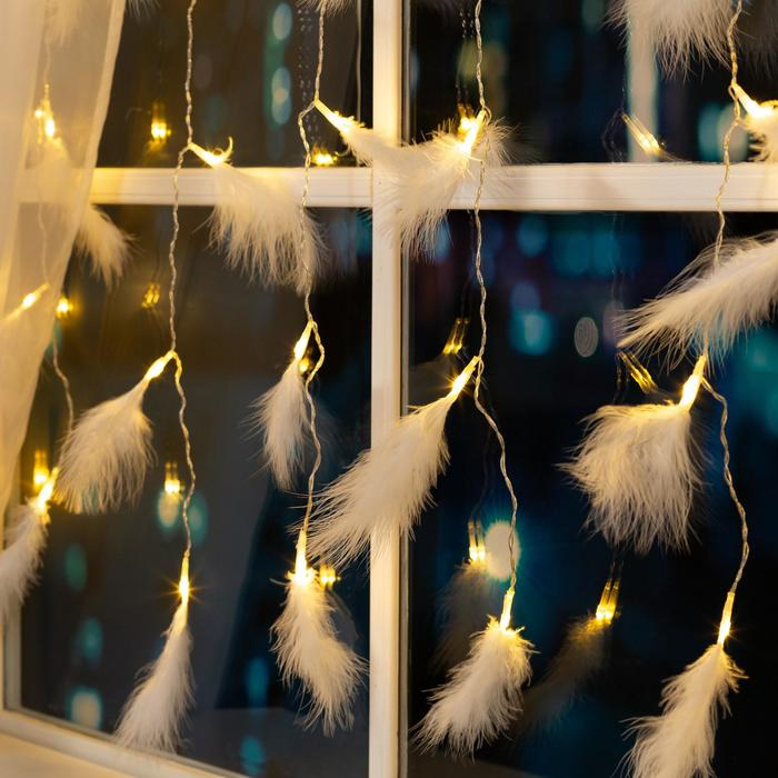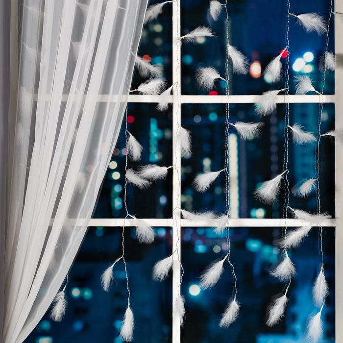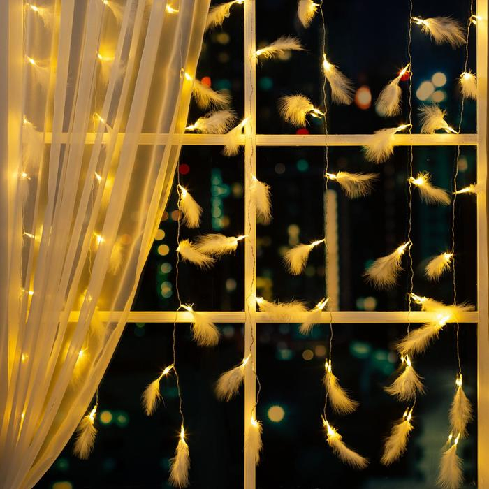 Гирлянда «Занавес» 3 × 1.4 м с насадками «Перья», IP20, прозрачная нить, 80 LED, свечение тёплое белое, 8 режимов, 220 В